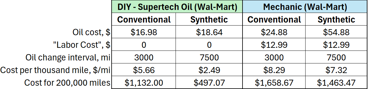 Can compute the cost/mile comparison relatively quickly seeing that the synthetic oil is still providing a lower cost/mile regardless of the higher cost
